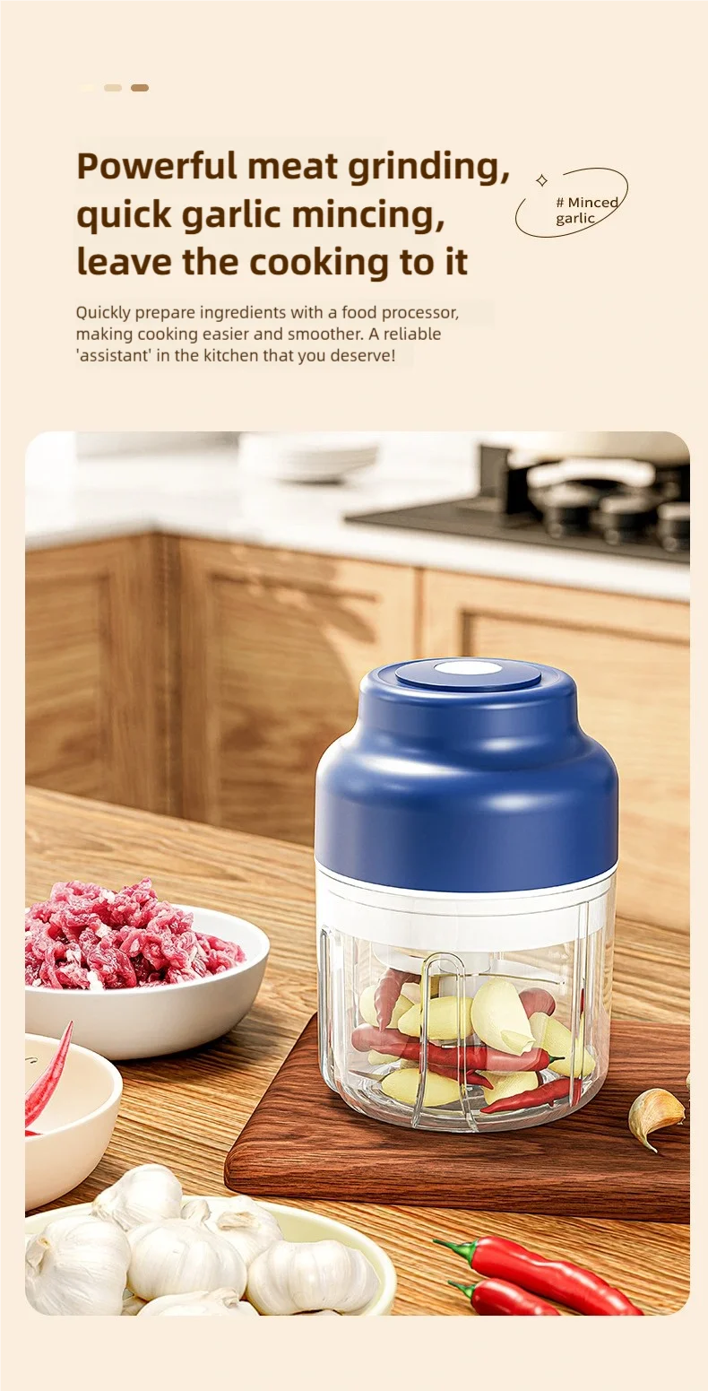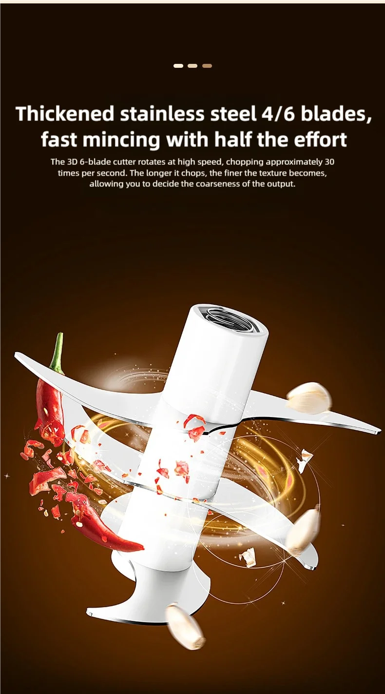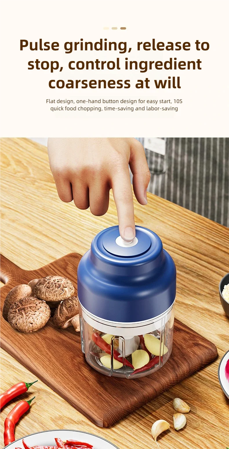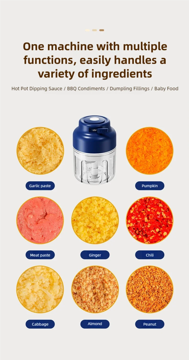 Functions: Mince garlic, mince ginger, grind meat, grind fruits and vegetables, peanuts, etc.