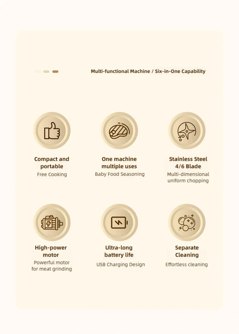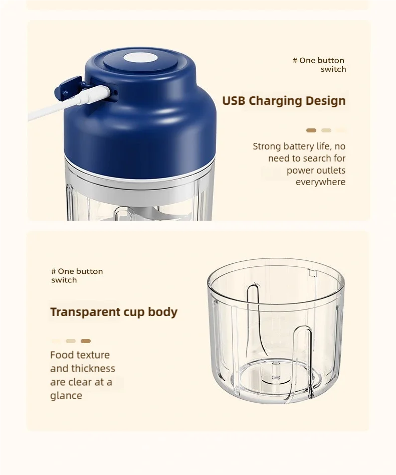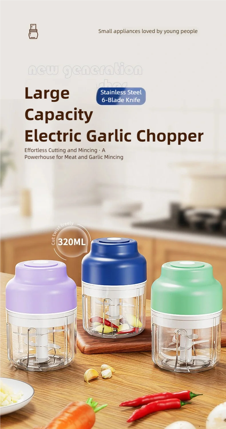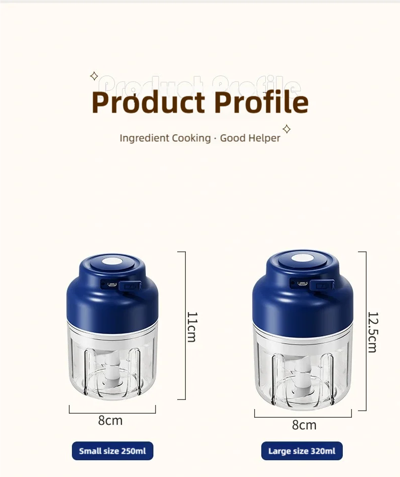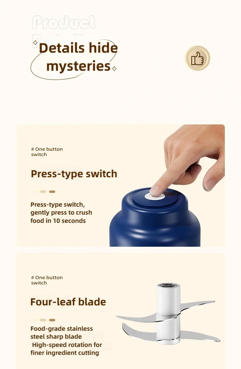 Functions: Mince garlic, mince ginger, grind meat, grind fruits and vegetables, peanuts, etc.